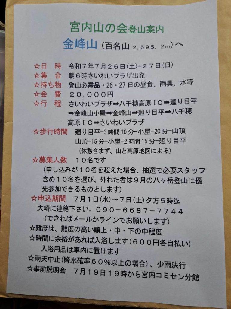 募集 金峰山 2595m