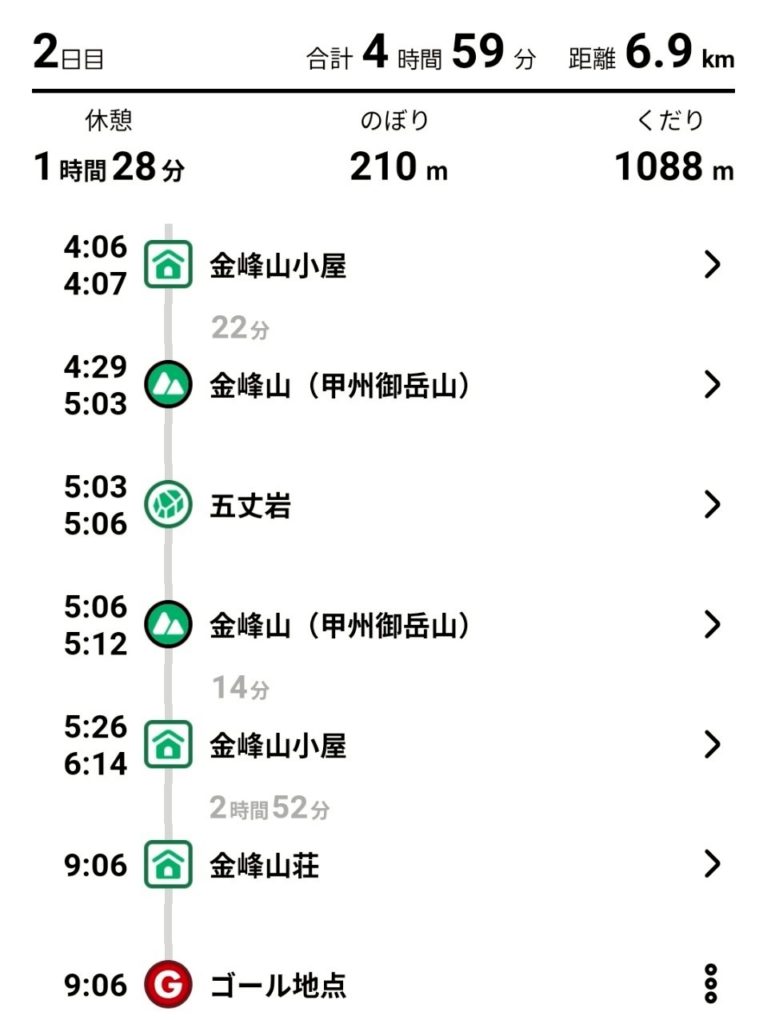 2025/7/26-27 金峰山 山小屋泊 2025-07-28 最終更新日時 : 2025-07-31 yama 廻り目平キャンプ場よりスタート9:50 登山計画はYAMAPで提出済み お昼11:00 雨がポツポツ、その後雷雨に 山小屋まであとすこし 金峰山小屋到着 山小屋着15:00 早速ビール 山小屋 夕飯(ボリューム満点、完食後カレーも食べれる) 18:30 ひとりひとりカーテンあり両サイドも 2日目 3:30起床 朝食前に山頂日の出 五丈岩へ 山頂より富士山がキレー 山小屋にもどり朝食 5:30 御粥おいしかったー(お代わり自由) 下山10:00、キャンプ場から1時間ほどの場所の八峰の湯でお風呂と昼食、帰宅 おつかれさま~ \ 最新情報をチェック /